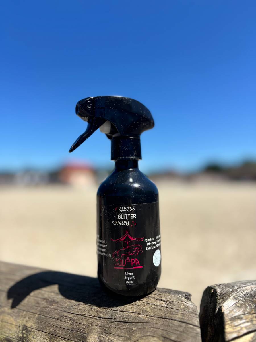 Le spray glitter de Ju & Pa, disponible en argent, cuivre et doré, est conçu pour apporter une touche d'éclat à votre cheval. Facile à appliquer, il permet de rehausser le pelage, la crinière et la queue avec des paillettes inoffensives qui illuminent le look de votre équidé.