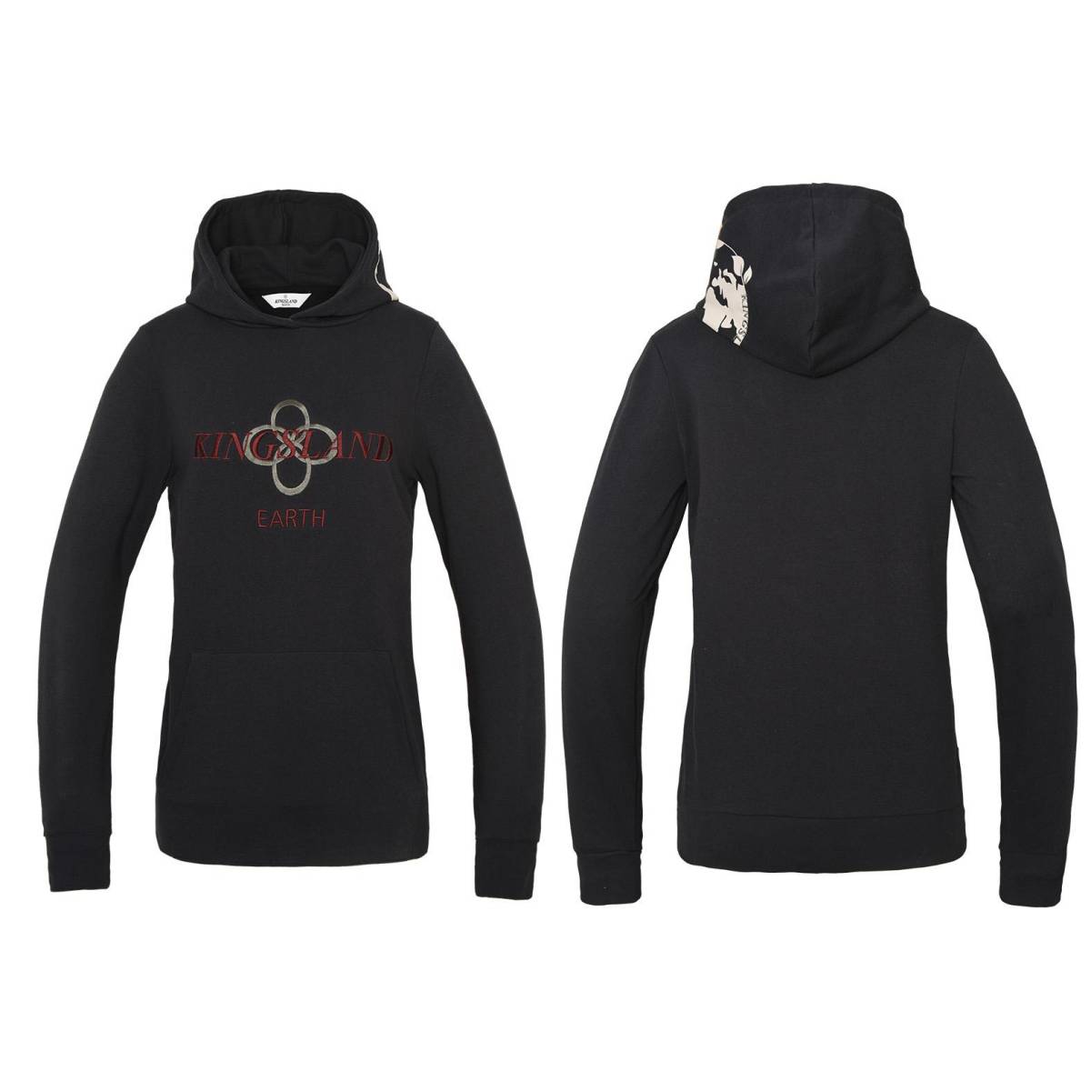 - Le nom de la marque Kingsland est brodé en grand devant en rouge foncé suivant du mot Earth, ce qui signifie la terre.