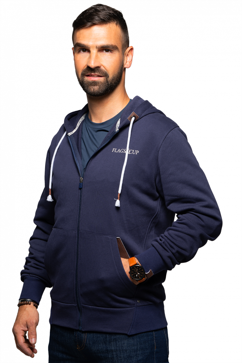- Impression Flag's&Cup sur le coeur et logo brodé sur pièce en cuir sur la capuche.