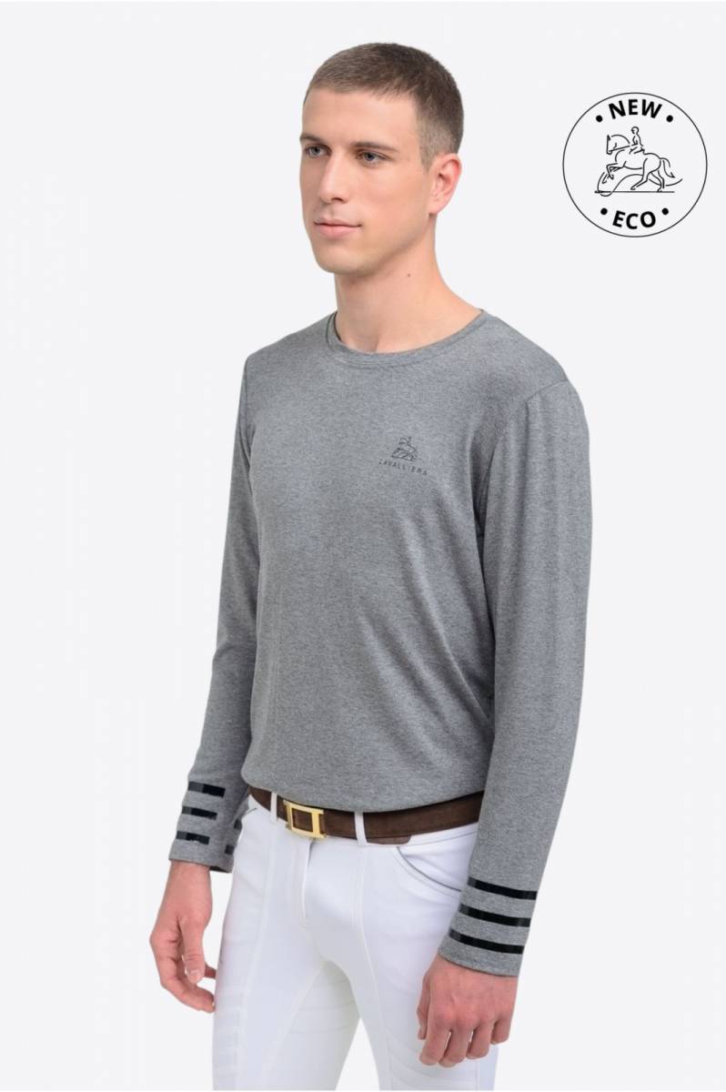 Conçu pour le cavalier moderne, ce t-shirt à manches longues en tissu naturel offre une sensation agréable en selle. Sa composition en coton assure une respirabilité et une souplesse optimales, parfaites pour un usage quotidien. Ce modèle est idéal à porter en première ou seconde couche, tout en ajoutant une touche de style avec son logo discret sur la poitrine et ses rayures sur les manches.