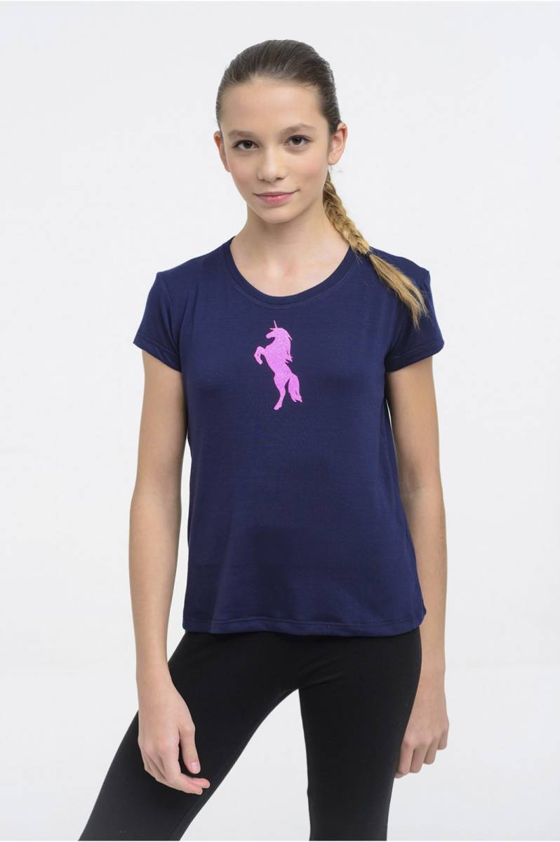 Apportez une touche de magie à la garde-robe de votre enfant avec ce t-shirt à manches courtes orné d'un motif de licorne pailletée. Conçu pour les jeunes cavalières, ce haut est à la fois amusant et pratique, parfait pour exprimer leur passion pour les licornes tout en étant à l'aise lors de leurs activités équestres.