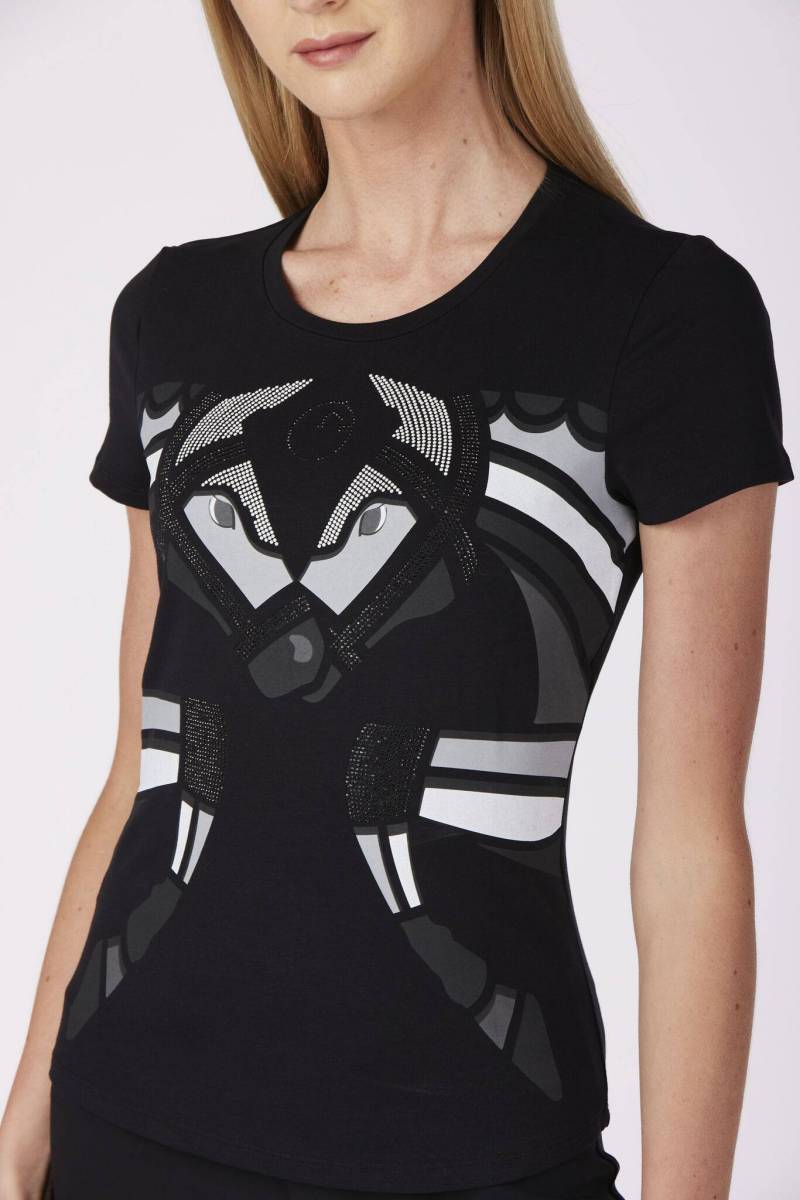 - T-shirt de la marque VESTRUM en coton avec deux chevaux en contraste agrémenté de strass en contraste.