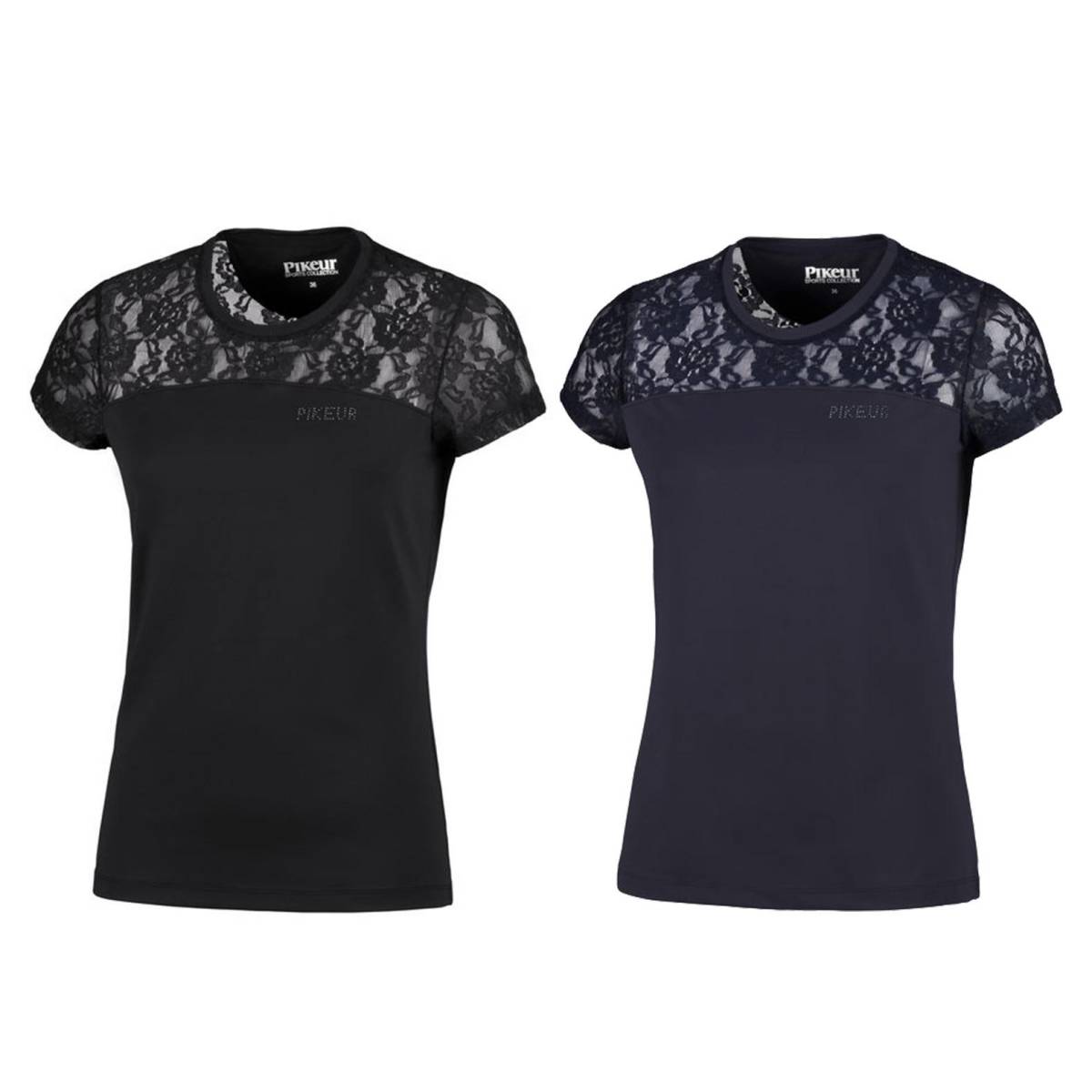 Magnifique dessus Pikeur pour dame, modèle Nava, avec ses courtes manches et le haut de ce dessus en dentelle rafinée.