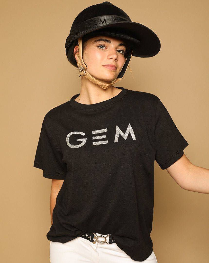 Oversize comme on aime, avec un gros logo GEM argenté pour la version noire ou bleu/blanc/rouge pour la version blanche. À porter aux écuries comme en ville ou en soirée !