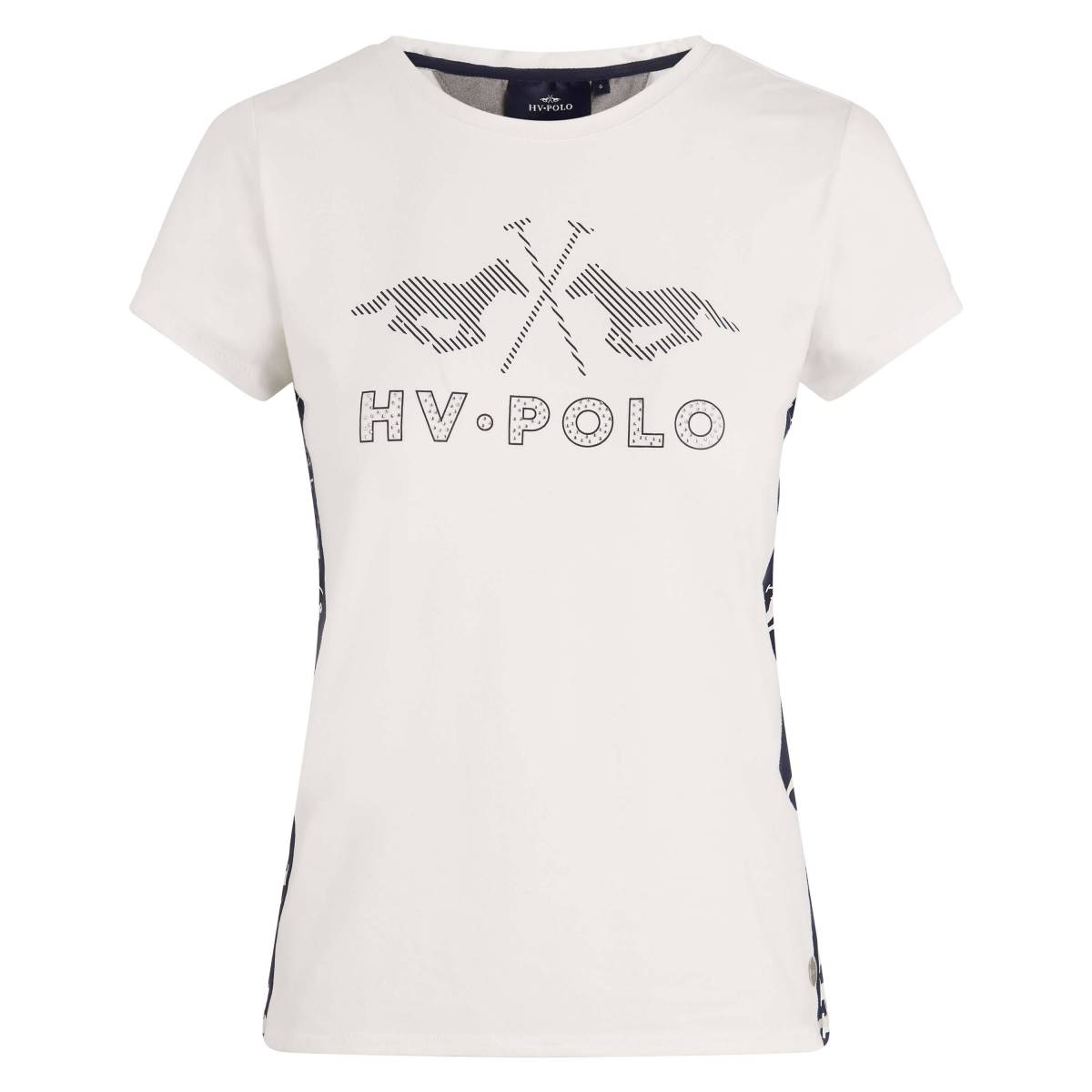 T-shirt d'équitation au look sport et chic à manches courtes et logo bien visible sur la poitrine : grand imprimé de chevaux au galop et de battes de polo croisées, avec inscription HV Polo en dessous.