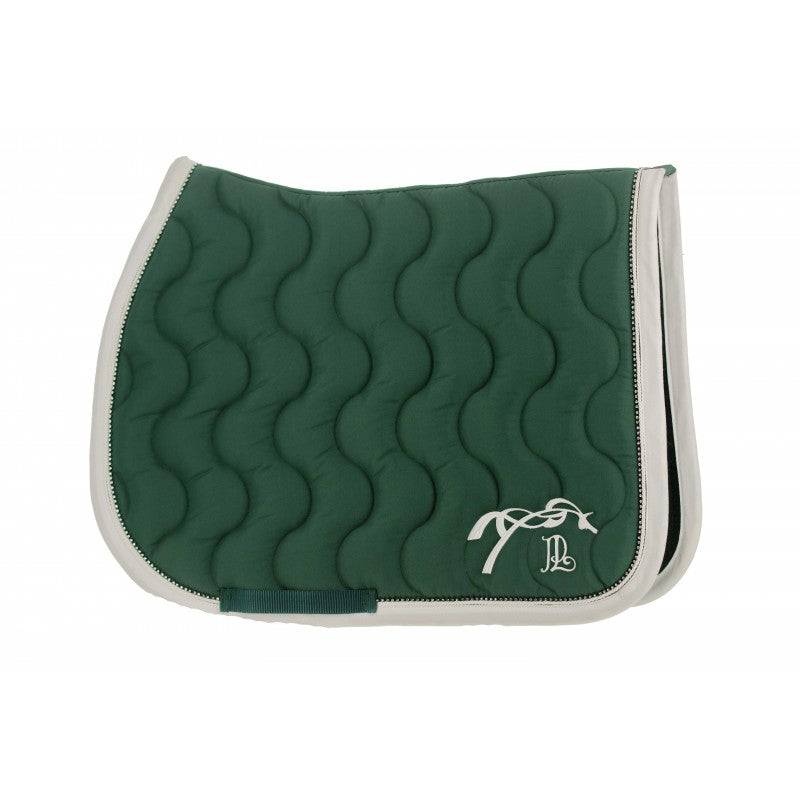 Véritable bijou d'élégance équestre, ce tapis séduit par son matelassage en forme de vague, son galon délicatement tressé et son liseré orné de strass scintillants qui captent la lumière à chaque mouvement. Conçu pour épouser parfaitement la morphologie du cheval, il présente une ligne de dos bien dégarrottée pour un ajustement optimal et une broderie Pénélope subtilement apposée sur les deux côtés. L'intérieur en tissu nid d'abeille respirant assure une excellente absorption de la transpiration et un confort durable, même lors des séances les plus intenses.