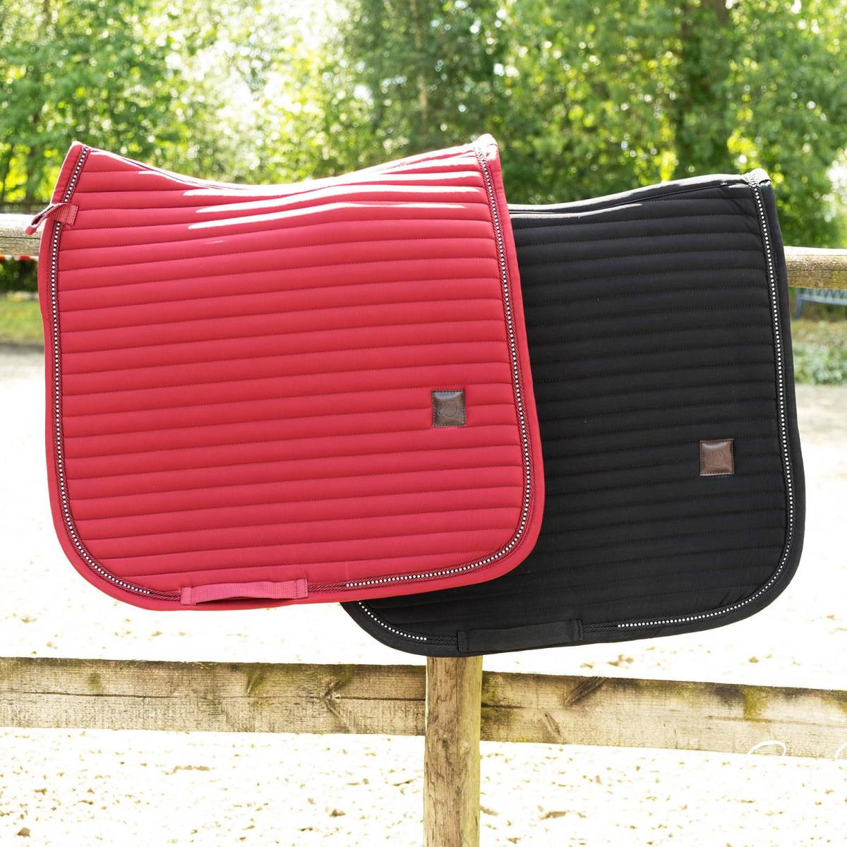 Le tapis de selle comporte un logo en cuir subtil, tout en offrant suffisamment d'espace pour le broder si nécessaire.