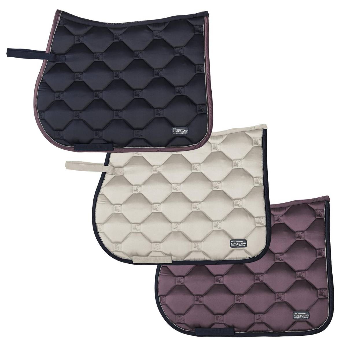 Le tapis de selle KlBlair de chez Kingsland est très beau avec son tissu extérieur en satin et, son écusson dans le coin extérieur.