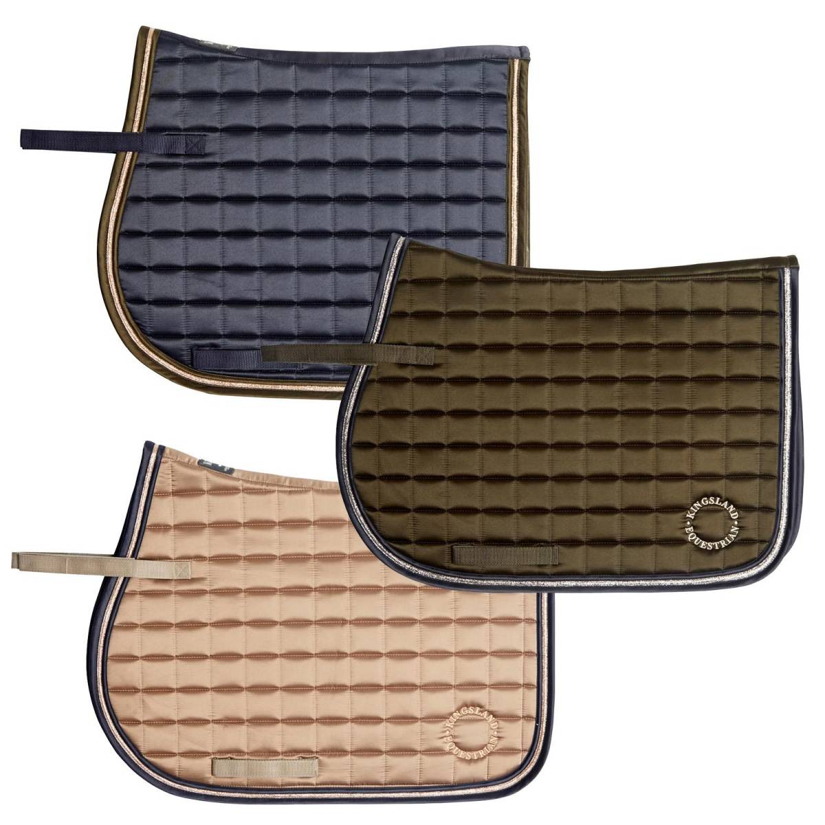 Le tapis de selle mixte KlSelena de chez Kingsland est magnifique avec sa matière en satin et lurex qui est doté d'une doublure 100% bambou avec un côté séchant très rapide pour assurer le confort de votre cheval.