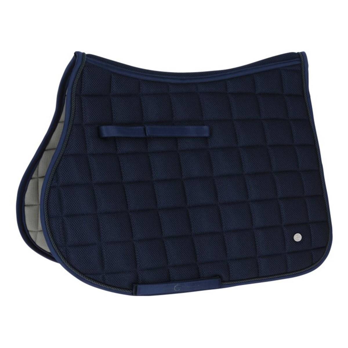 Le tapis de selle obstacle 2024 Covalliero est un tapis de selle donc l'extérieur est en matériau d'aspect à maille large et dont le dessous est respirant grâce aux fibres de viscose de bambou.