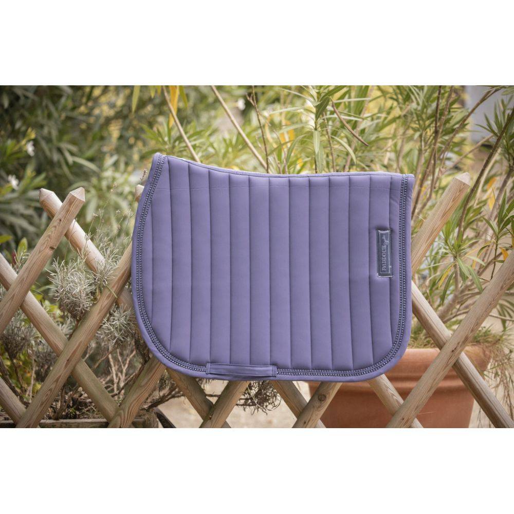 Composé d'un matelassage bien épais en lignes verticales , le Tapis de selle Paddock Sports Verticali est orné d'une double ligne de strass sur son contour qui lui apporte une touche très girly .