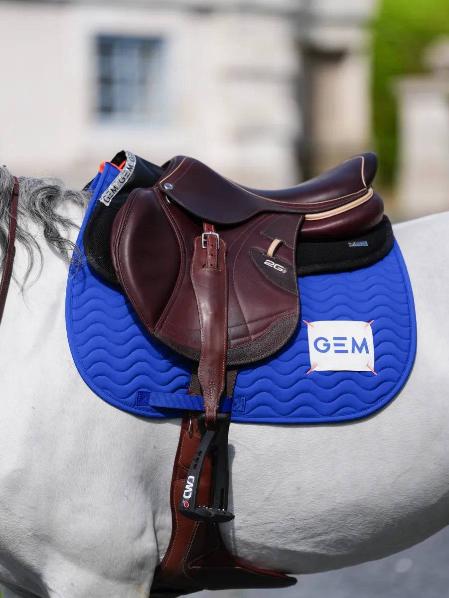 Le tapis de selle TOUC TOUC Obstacle de la marque GEM est spécialement conçu pour répondre aux exigences des cavaliers d'obstacle. Avec sa couleur bleu roi, il apporte une touche d'élégance tout en garantissant un confort optimal pour le cheval.