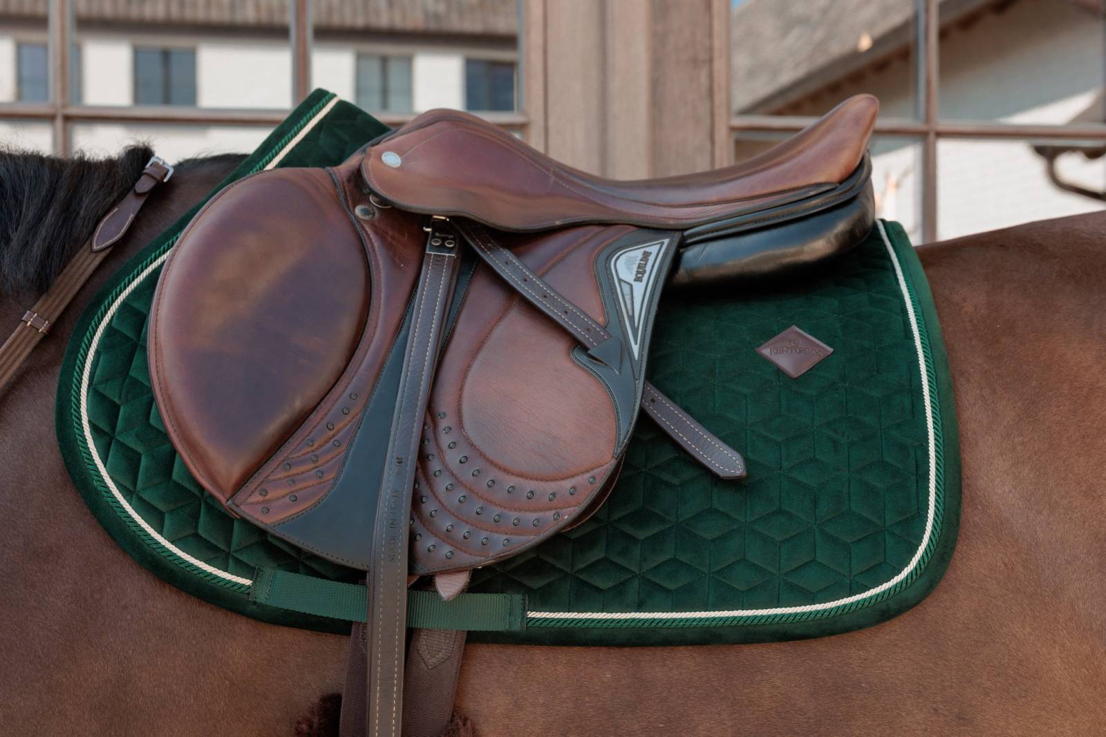 Le tapis de selle Velvet de Kentucky Horsewear se distingue par son tissu en velours raffiné et ses finitions soignées, parfait pour les cavaliers en quête d'esthétisme et de confort. Ce modèle est conçu pour s'adapter à la forme jumping, tout en offrant des possibilités de personnalisation.