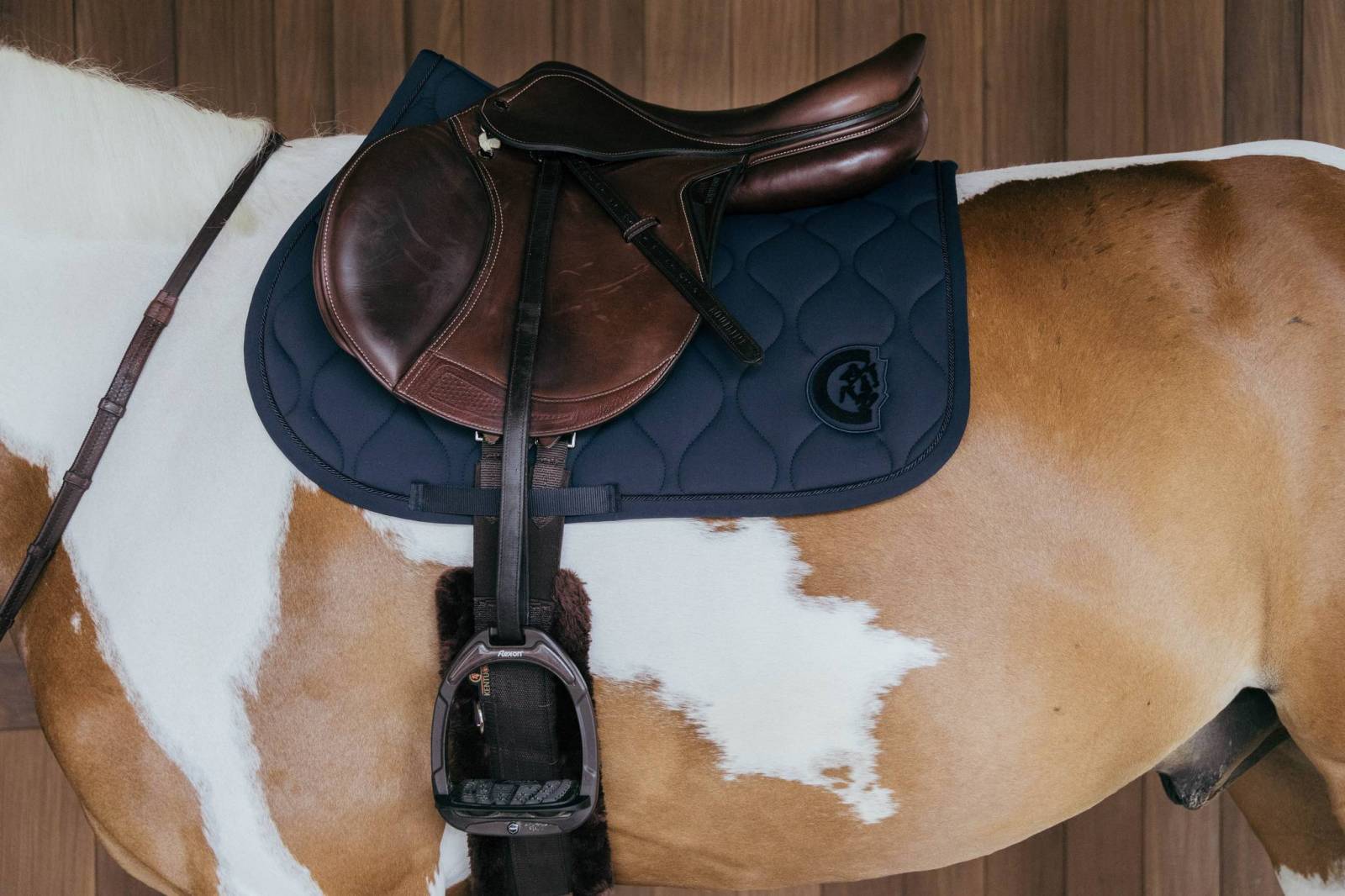Ce Tapis de Selle est fabriqué à partir d'un mélange de tissus de haute qualité et respirants pour garantir la durabilité du produit tout en assurant le confort de ton cheval. La doublure intérieure dispose d'une technologie avancée d'évacuation d’humidité pour garder le dos du cheval au sec lors des entraînements intenses.