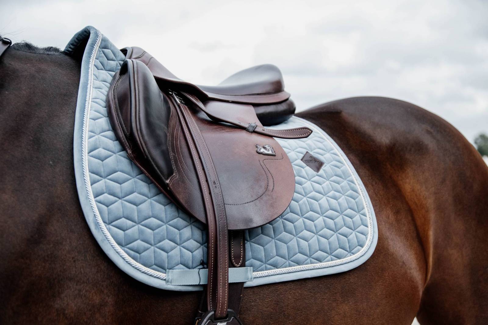 Le tapis de selle comporte un logo en cuir subtil, tout en offrant suffisamment d'espace pour broder le tapis de selle si nécessaire.