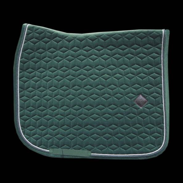 Le tapis de selle Saddle Pad Velvet très élégant avec son effet velours et son passepoil à double torsion. Ce tapis est conçu pour le dressage et offre un excellent amorti entre le dos du cheval et la selle, tout en protégeant contre les frottements. Le tapis de selle n'a pas de sangle gênante pour attacher la selle, seulement une sangle en nylon pour la sangle.
