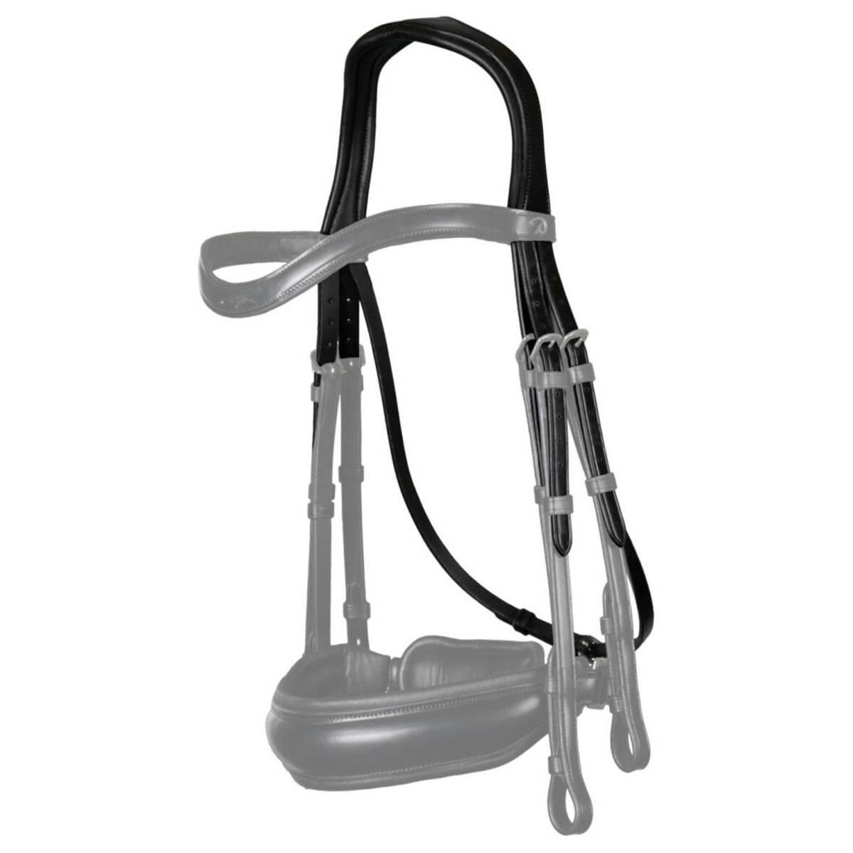 La têtière de bride type dressage en S est la dernière-née de l’innovation Dy’on, destinée aux brides de la collection Dressage cuir plat