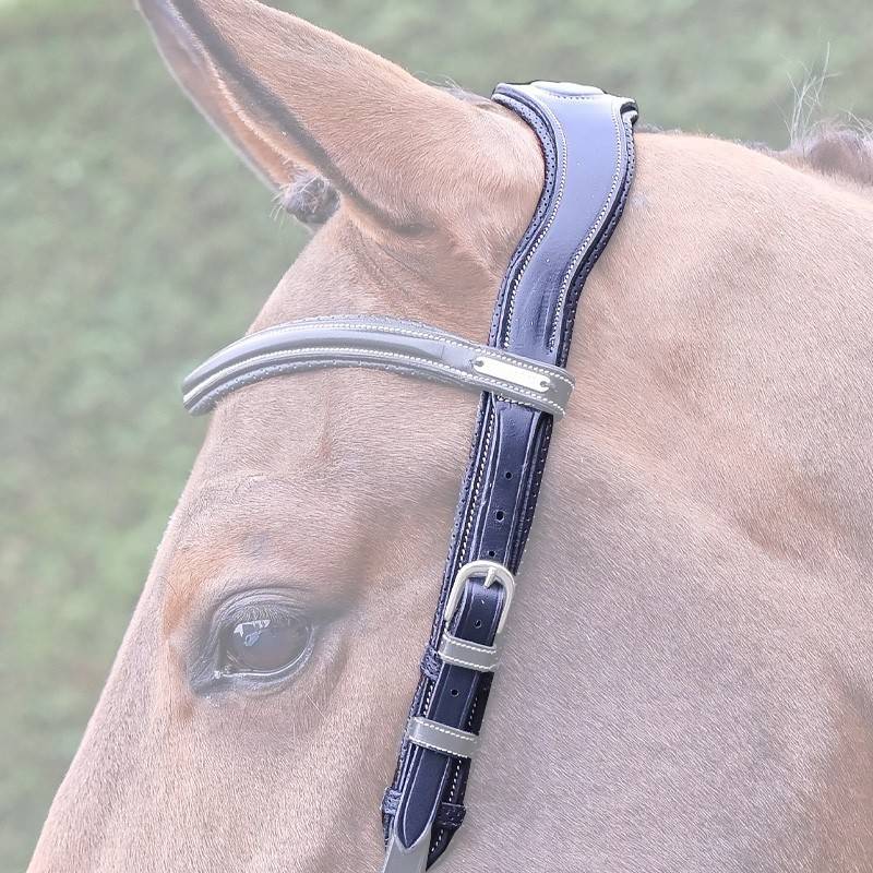 La têtière New York de la collection One de Jump'In est conçue pour s'adapter parfaitement à votre bridon New York, alliant esthétique et fonctionnalité.