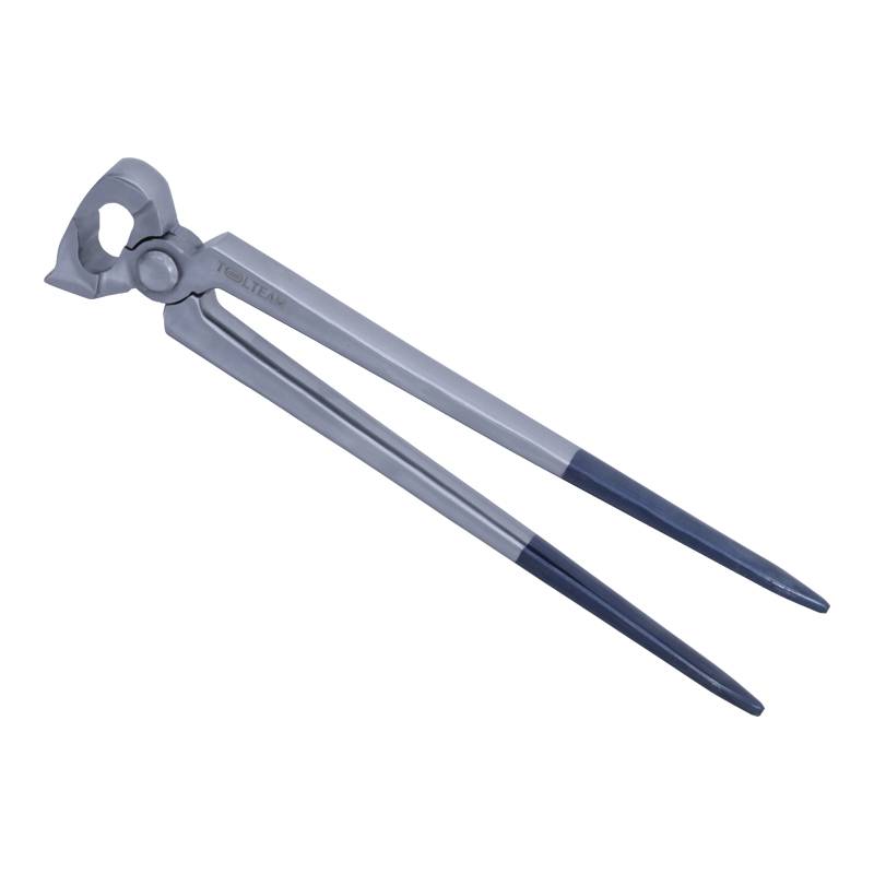 La tricoise à talon Tolteam est un outil indispensable pour le déferrage et le travail des clous de ferrure. Elle permet de couper les clous et de replier les rivets manuellement grâce à son talon conçu pour appuyer et contrôler la matière sans abîmer le sabot.