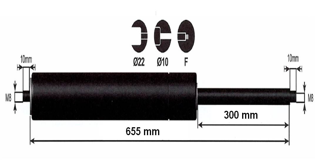 Vérin à gaz 100n - entraxe 700mm