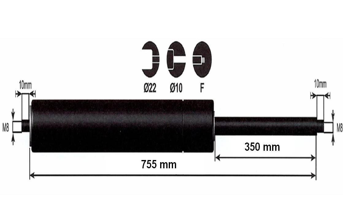 Vérin à gaz 800n - entraxe 800mm