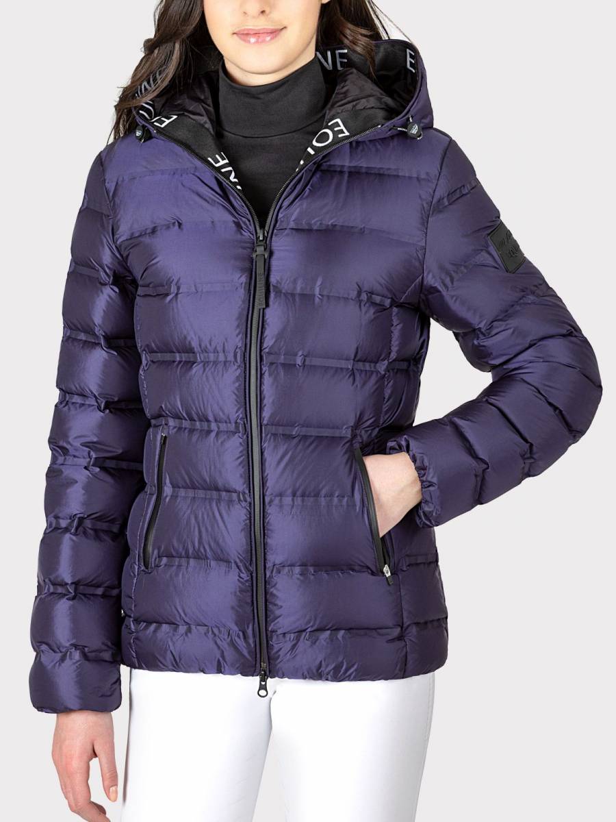 Veste en duvet bleu cobalt pour femmes avec rembourrage en plumes, ultra chaude et confortable.